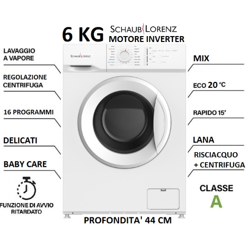 LAVATRICE 6 KG 1000 GR A INVERTER VAPORE SLORENZ