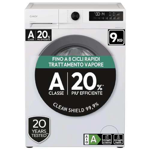 LAVATRICE 9 KG 1400 GR A-20% INVERTER VAPORE CANDY